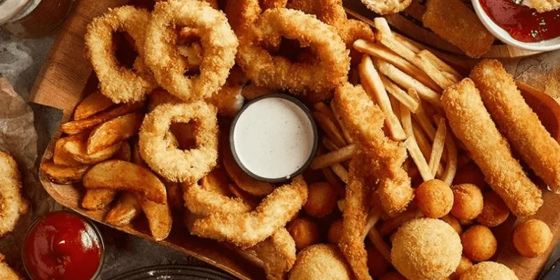 - Thực phẩm nhiều dầu mỡ và đồ chiên rán như các món chiên rán như gà rán, khoai tây chiên, chả giò khiến gan phải làm việc quá tải