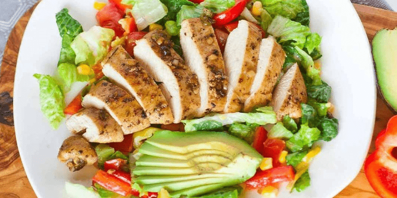 Món salad này phù hợp cho bữa trưa trong thực đơn giảm cân với ức gà trong 1 tuần nhờ sự kết hợp giữa protein nạc, chất xơ và vitamin dồi dào. Sự tươi mát, nhẹ nhàng và dễ tiêu hóa giúp cung cấp năng lượng mà không gây cảm giác nặng bụng, hỗ trợ tốt cho quá trình đốt mỡ.
