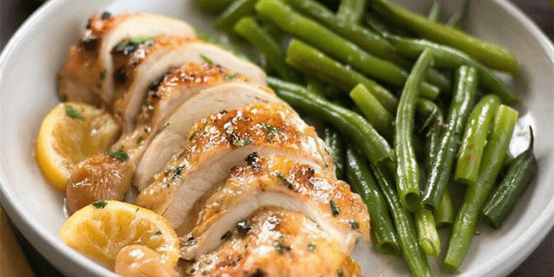 Món ăn này là lựa chọn lý tưởng cho bữa tối trong thực đơn giảm cân với ức gà trong 1 tuần nhờ phương pháp chế biến ít dầu mỡ. Gia vị giúp tăng hương vị mà không cần dùng đến sốt béo, đồng thời giữ được độ mọng tự nhiên của thịt.